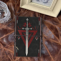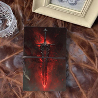 Handmade A6 Vintage Notebook Thick Paper Thoughtful Gift for Meeting Note Takers with Mythical Sword with Red Glow Printed O