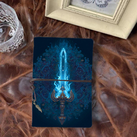 Handmade A6 Notebook Replaceable Pages Perfect Gift for Corporate Users with Magic Sword with Blue Flames Printed on the Cov